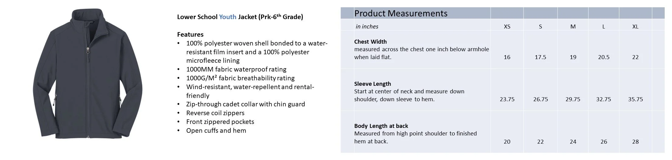 Soft Shell Black Jacket Size (PreK through 6th Grade) - $60